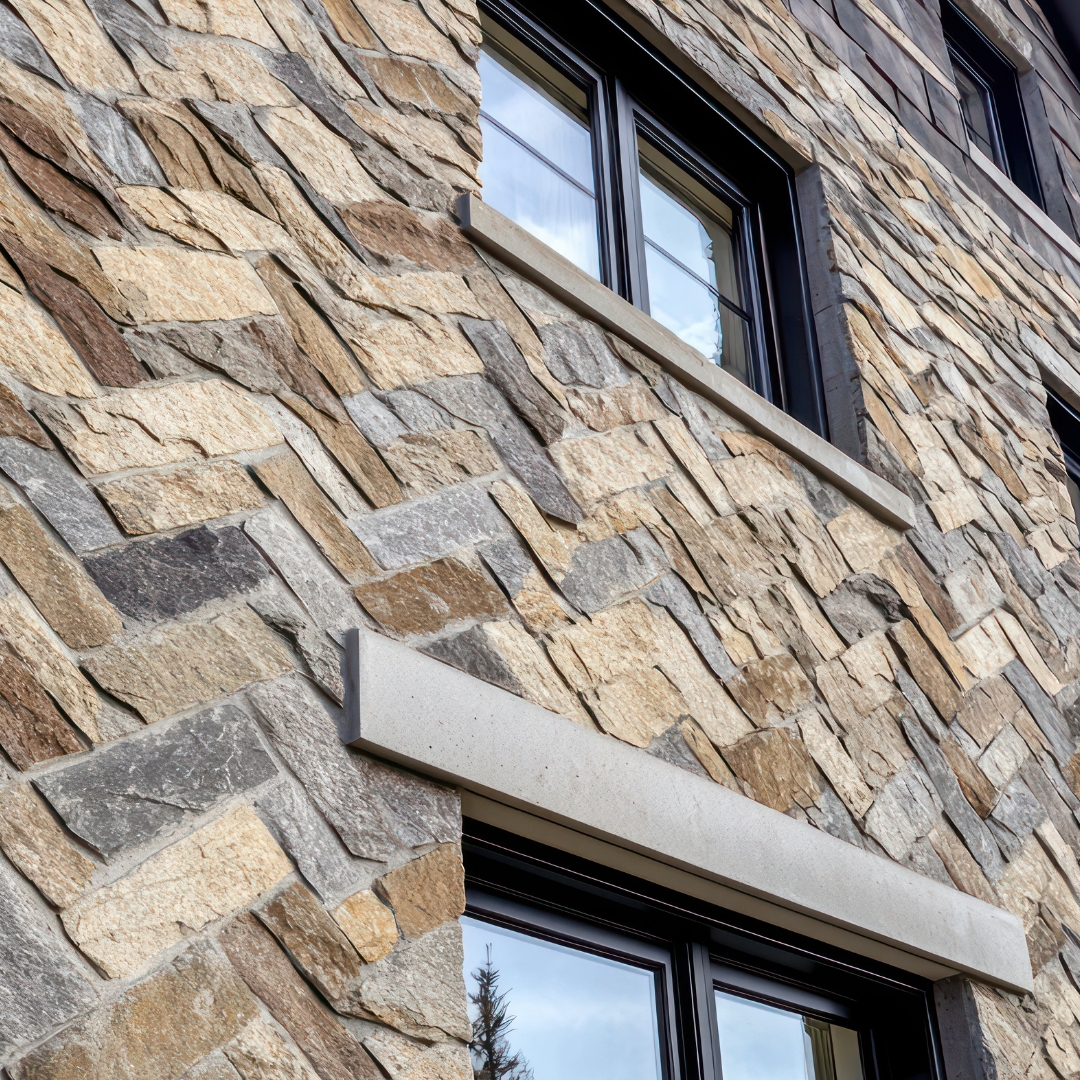 - Natural stone (granite, limestone, slate) or manufactured stone veneer